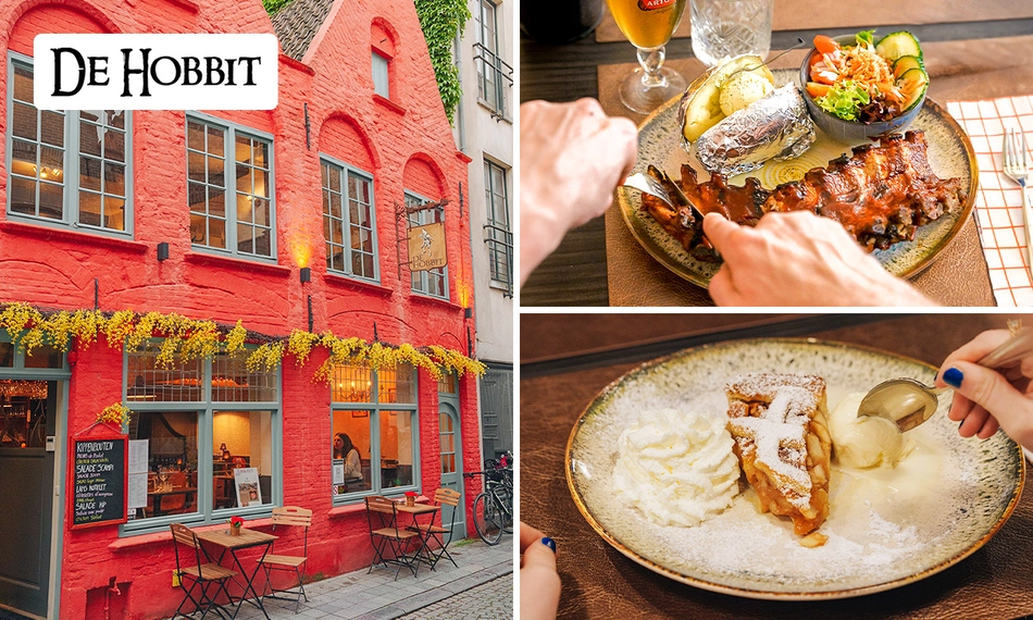 Geen second breakfast, maar een uitgebreid 3-gangen keuzediner bij De Hobbit in Brugge! Ga op avontuur bij dit stijlvolle restaurant en proef hun specialiteit: malse vleesgerechten van de open haard-grill. Stel je eigen menu samen, met keuze uit een voor-, hoofd- en nagerecht. Ga bijvoorbeeld voor een kipsalade, ribbetjes en een warme appeltaart na. Neem goed gezelschap mee of trakteer jezelf, wij wensen je hoe dan ook een heel fijne avond!