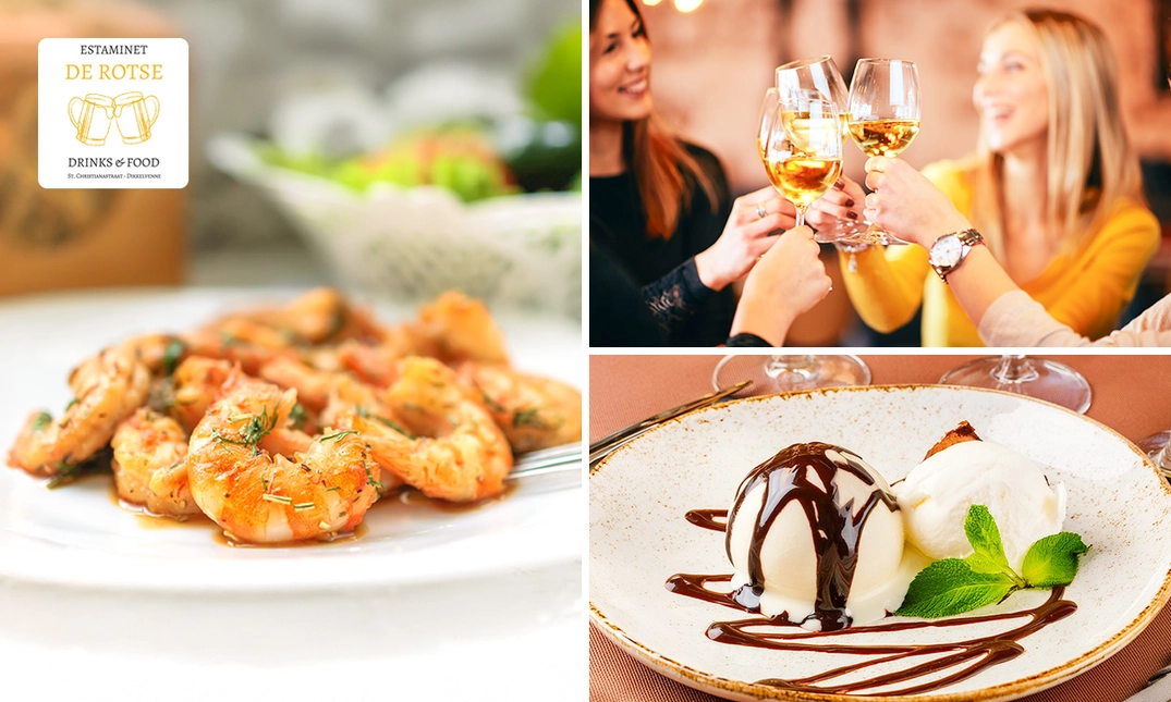 Geniet van een 3-gangen keuzelunch of -diner bij De Rotse: proef bijvoorbeeld de kaaskroketten, stoverij van varkenswangen en sluit af met zalige appeltaart