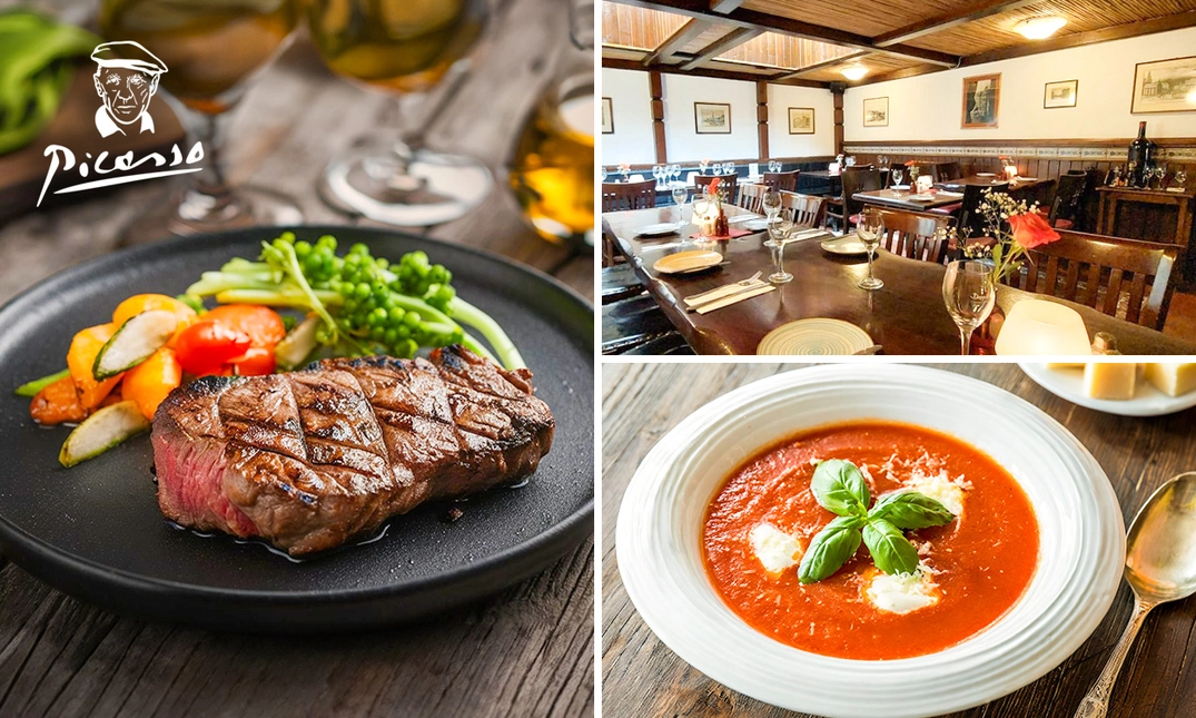 Genieße unvergessliche Momente voller Geschmack und Atmosphäre im Restaurant Picasso in Düsseldorf. Lass Dich bei einem himmlischen 3-Gänge-Menü nach Wahl von der harmonischen Verbindung aus saftigem Fleisch und gemütlicher Geselligkeit verwöhnen. Für noch mehr Genuss kannst Du Dich auch für ein besonders luxuriöses 3-Gänge-Menü entscheiden. Verbringe eine köstliche Zeit mit Freunden oder der Familie. Wir wünschen einen guten Appetit!