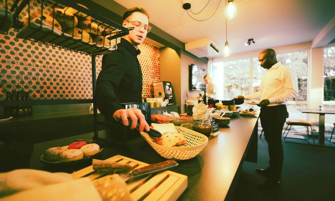 Start jouw dag goed met een overheerlijk en uitgebreid all-in ontbijt inclusief een glaasje bubbels bij Travel Hotel Kruisem: gustig gelegen aan de afrit van E17 in Kruisem