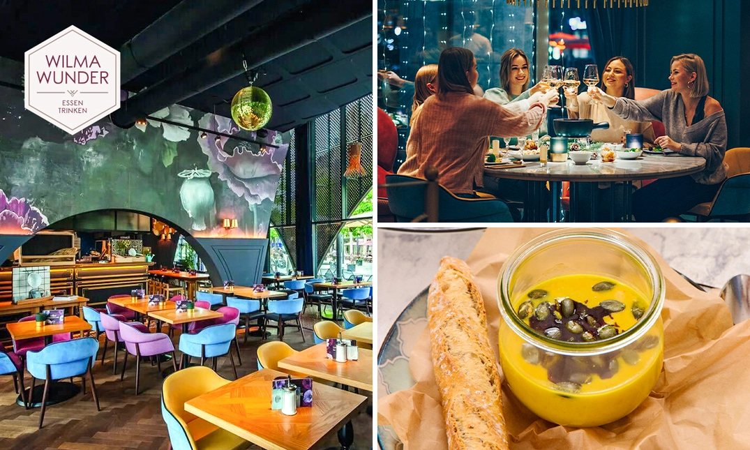 Du hast Lust auf ein richtig leckeres Essen? Bei Wilma Wunder in Düsseldorf wartet ein entspanntes 3-Gänge-Menü auf Dich. Du kannst zwischen zwei verschiedenen Menüs wählen. Nimm zum Beispiel als Hauptgericht ein leckeres Schweineschnitzel oder die himmlischen Lachs-Spinat-Nudeln. Es ist garantiert für jeden etwas dabei. Das Restaurant liegt super zentral in Düsseldorf, also kannst Du Deinen Shoppingtag hier perfekt ausklingen lassen. Lass es Dir schmecken!