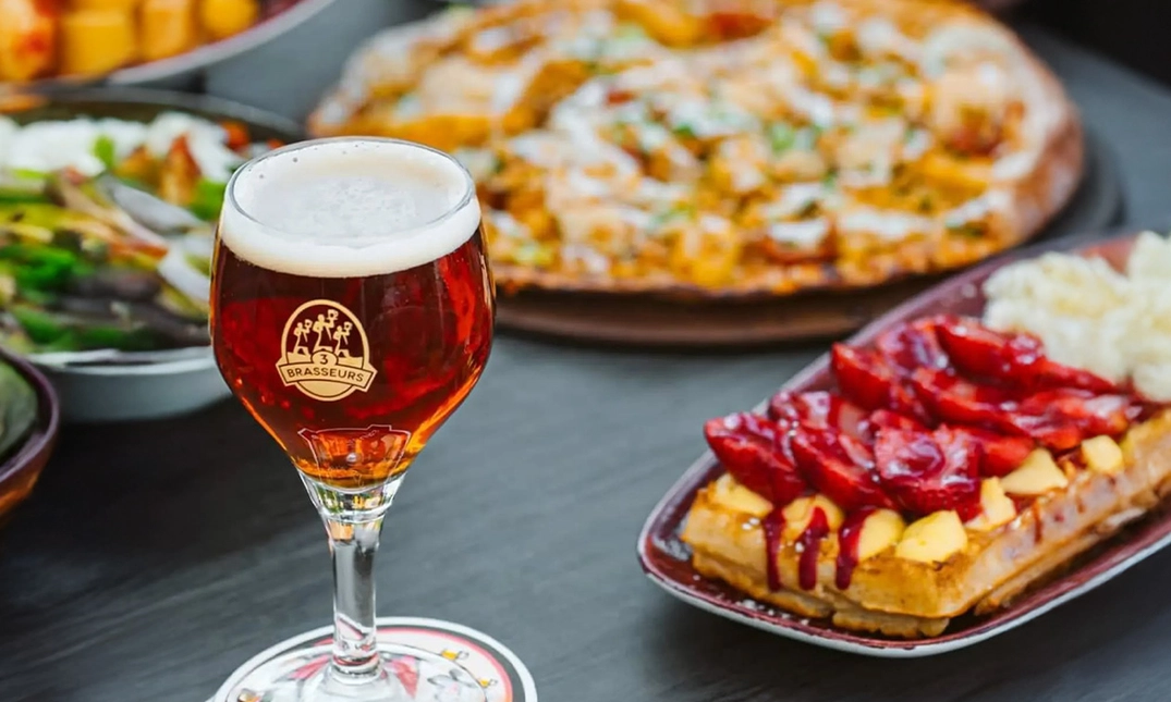 Que vous ayez envie d’un moment convivial entre ami(e)s ou d’une pause en solo, 3 Brasseurs est l’adresse idéale. Accordez-vous un instant de partage autour d’une planche Bistro à partager, ou optez pour un moment rien qu’à vous avec un dîner en 2 services à la carte. La carte, généreuse et variée, saura combler toutes les envies : des spécialités traditionnelles du Nord de la France à l’incontournable flammekueche, sans oublier la savoureuse carbonade flamande. Dans une atmosphère chaleureuse et authentique, inspirée de l’esprit du Nord, le restaurant invite à la convivialité et au plaisir de bien manger. Entrez chez 3 Brasseurs et laissez-vous accueillir comme un(e) ami(e), avec sourire et bienveillance !