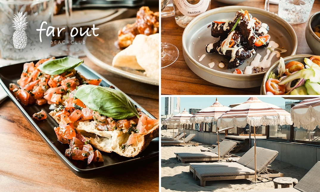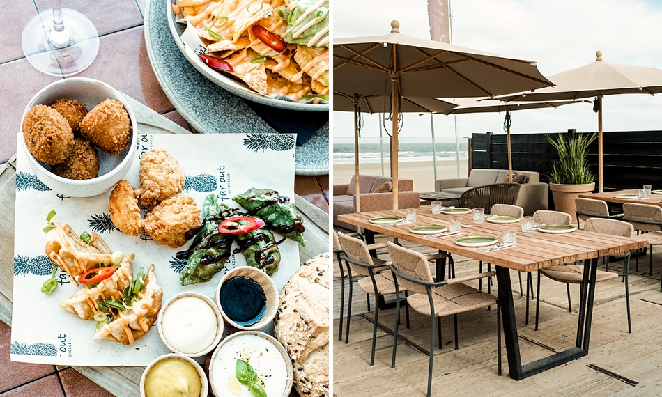 Heerlijk 3-gangendiner met vrije keuze van de kaart bij Beachclub Far Out aan het strand van Zandvoort: geniet van smakelijke gerechten met prachtig uitzicht op zee