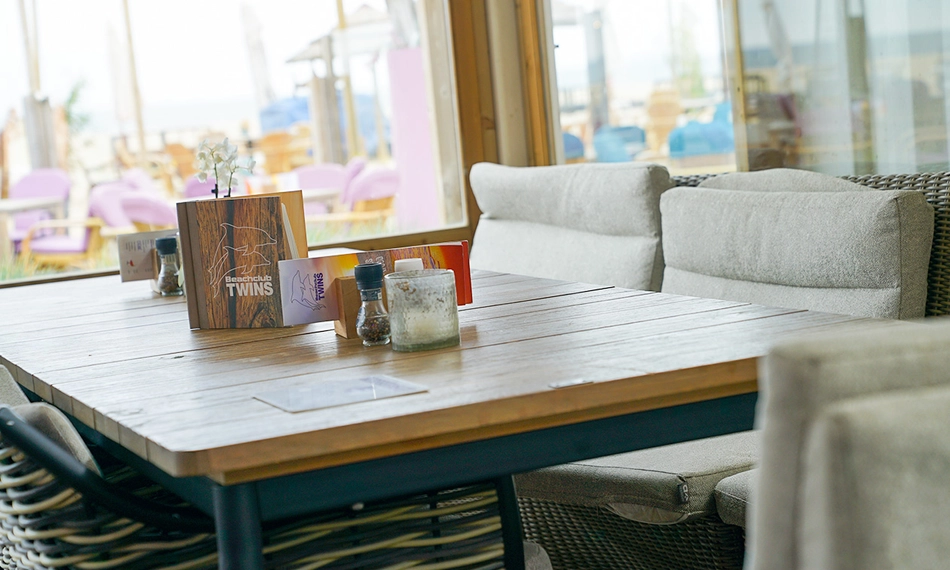 Beachclub TWINS staat bekend om de gezellige en ongedwongen sfeer. Jij kunt hier goed vertoeven aan het strand met familie, vrienden of collega's. Schuif aan voor een heerlijk ontbijt, lunch of diner. De chef-kok maakt samen met zijn team de lekkerste gerechten voor je klaar met regionale verse producten. Vlees, vis, vegetarisch of vegan? Er is voor ieder wat wils.
