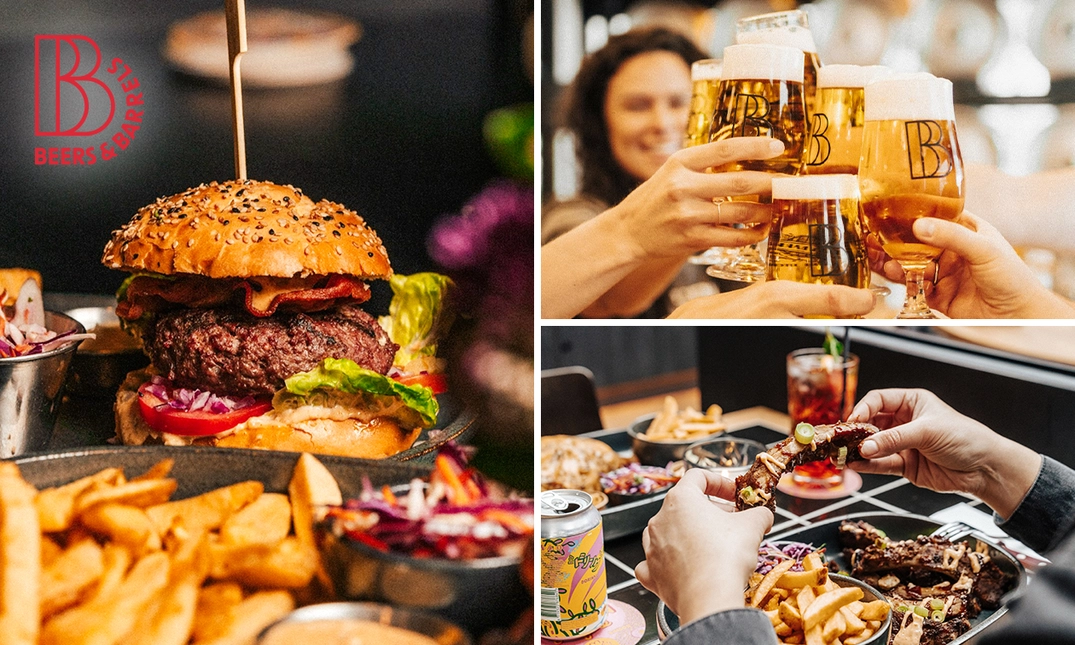Drink and Thrive bij Beers & Barrels! Of dat nou met vrienden, familie, collega's of een date is. Neem plaats en geniet van de smakelijke gerechten of tap je eigen biertje aan één van de taptafels. Ideaal om te combineren met een mals stuk vlees, dat voor je wordt bereid op de Josper-grill. Of kies een ander gerecht van de uitgebreide lunch-, diner- of borrelkaart.