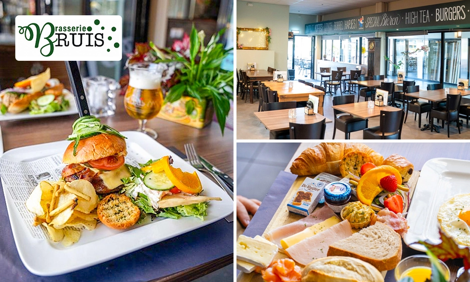Heb jij zin om heerlijk te genieten in een ongedwongen sfeer? Dan ben je bij Brasserie Bruis aan het goede adres. Je geniet hier van een ontbijt naar keuze of 2-gangen keuzelunch of -diner. Start je dag goed met het ontbijt Bruis of deluxe, met diverse dagverse ingrediënten. Of ga voor de 2-gangen keuzelunch of -diner en proef bijvoorbeeld de tomatensoep en wienerschnitzel. Er is voor ieder wat wils. Alvast eet smakelijk!