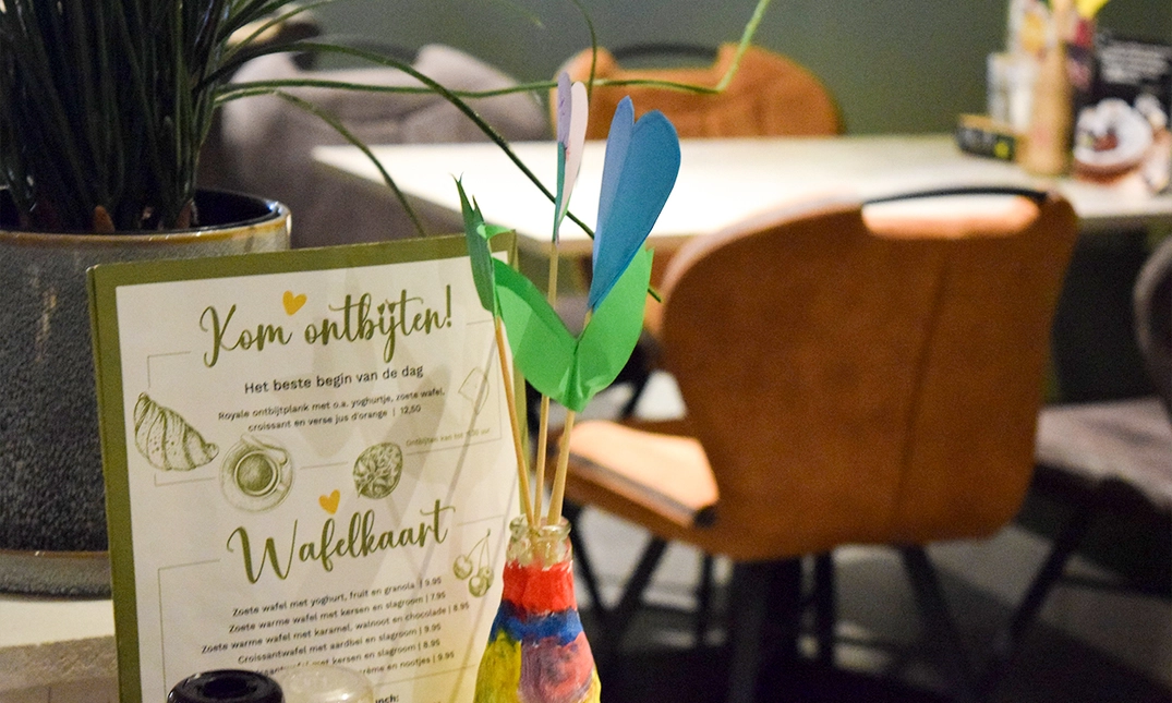 Kom gezellig binnen bij Brasserie Van eigen deeg! Bij deze sfeervolle brasserie ontvangt het gastvrije en enthousiaste personeel je met open armen. In de bediening werken mensen met een verstandelijke beperking. Samen met hun begeleiders zorgen ze ervoor dat het jou aan niets ontbreekt. Start je dag bijvoorbeeld goed met een lekker ontbijt of kies voor een smakelijke lunch. Op de uitgebreide kaart staat voor ieder wat wils! Als ontbijt smul je van een royale ontbijtplank of kies je een van de unieke wafels. Ook de lunchkaart puilt uit van de smakelijke gerechten.