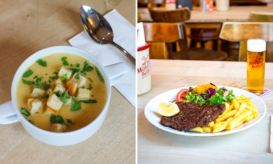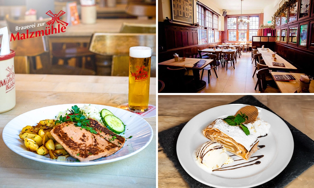 Gönn Dir in der Brauerei zur Malzmühle, ein genussvolles 2-Gänge-Mittagsmenü. Dank der idealen Lage direkt am Heumarkt kannst Du Deinen Mittag entspannt und gemütlich genießen. Stell Dir Dein Menü ganz nach Deinem Geschmack zusammen: Wähle entweder eine köstliche Vorspeise und ein herzhaftes Hauptgericht oder ein Hauptgericht und ein süßes Dessert. Lass Dich von der traditionellen deutschen Brauhausküche verwöhnen. Wir wünschen Dir einen guten Appetit!