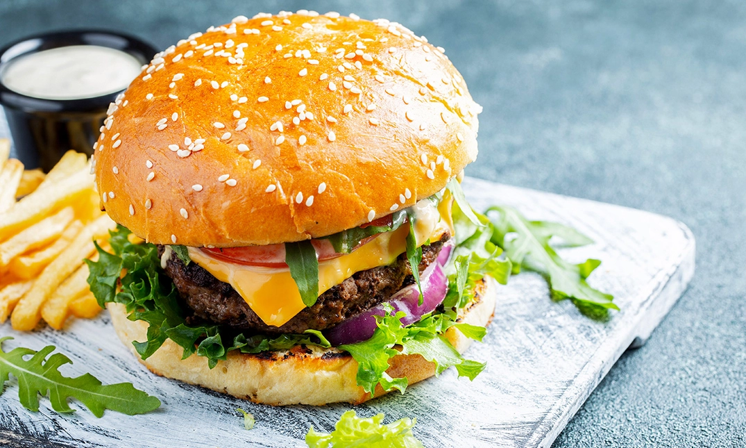 Geniet van een smakelijk burgermenu naar keuze om af te halen bij De Puntzak: smul van een beefburger of kipburger met friet, mayonaise en cola