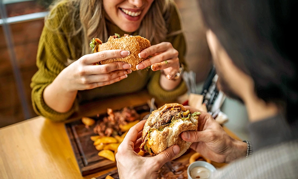 alle burgermenu's worden geserveerd met een grote portie friet, een potje mayonaise en een cola.