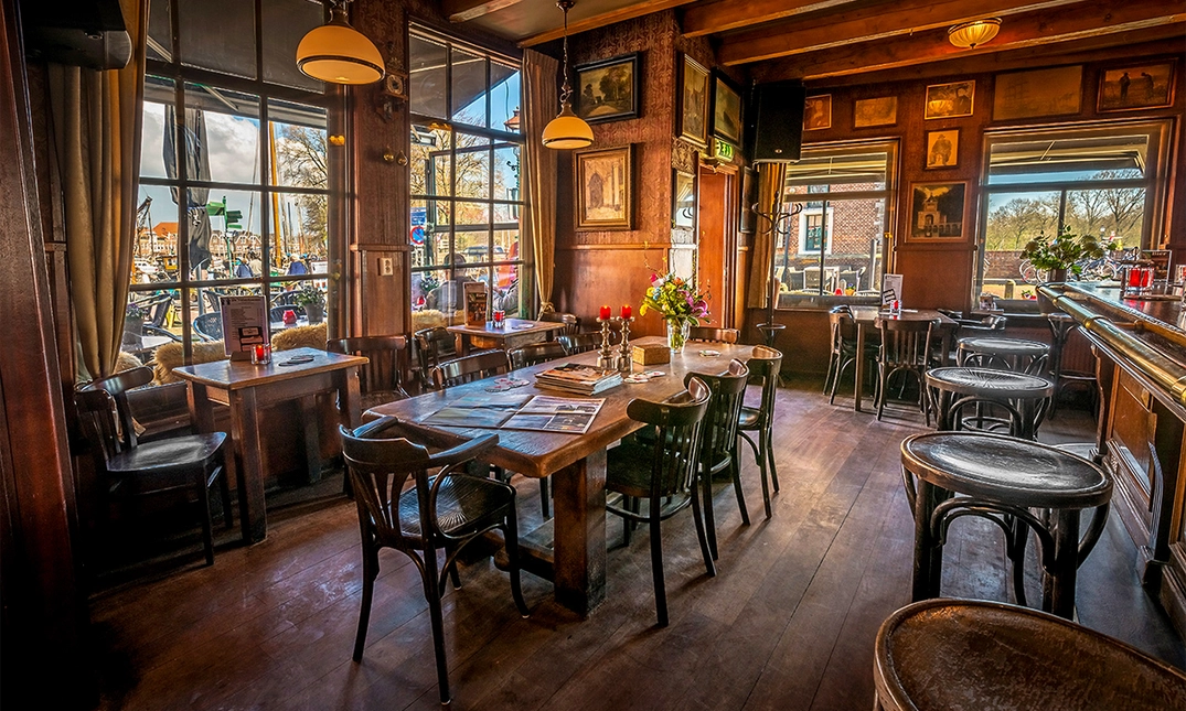 Geniet binnen van het karakteristieke interieur of buiten op het terras met uitzicht op de haven. Ook voor een borrel, live muziek of gezellige thema-avonden ben je hier aan het juiste adres. Een plek waar locals, toeristen en dagjesmensen samenkomen om te genieten van goed eten, een drankje en een fijne tijd samen.