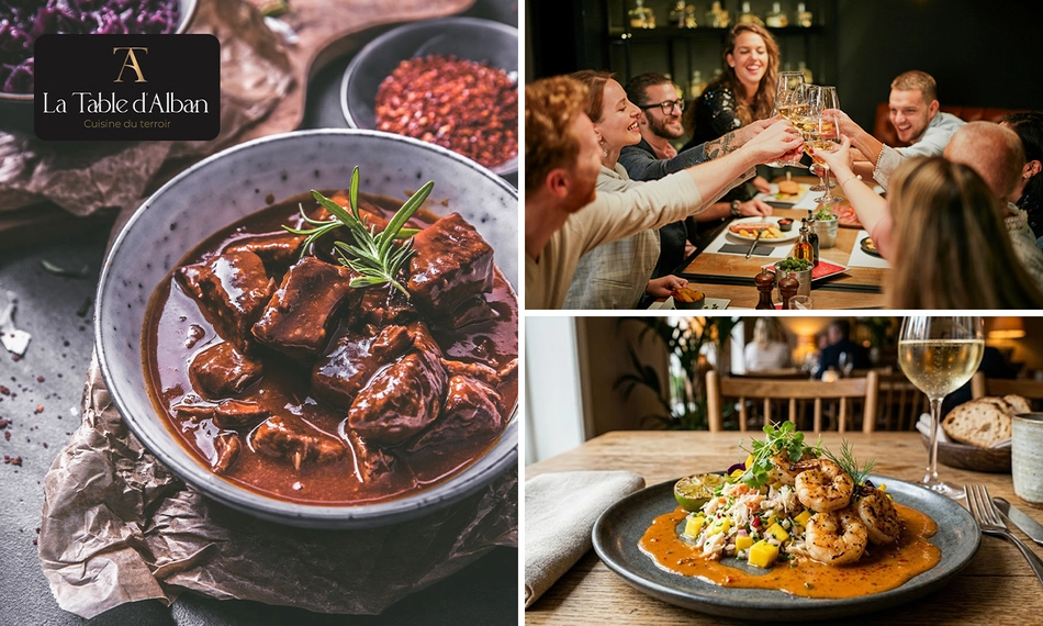 Vivez un moment de convivialité avec un menu en 2 services à La Table d'Alban à Durbuy. Installé à l’étage d’une écurie, le restaurant offre un cadre authentique et chaleureux, plein de caractère. Issu d’un producteur de viande de porc, l’établissement met un point d’honneur à valoriser des produits de qualité et un véritable savoir-faire artisanal. Le chef vous propose des recettes savoureuses, élaborées selon l’inspiration et les arrivages, pour garantir fraîcheur et gourmandise dans chaque assiette. Profitez d’un agréable moment culinaire dans un lieu unique !