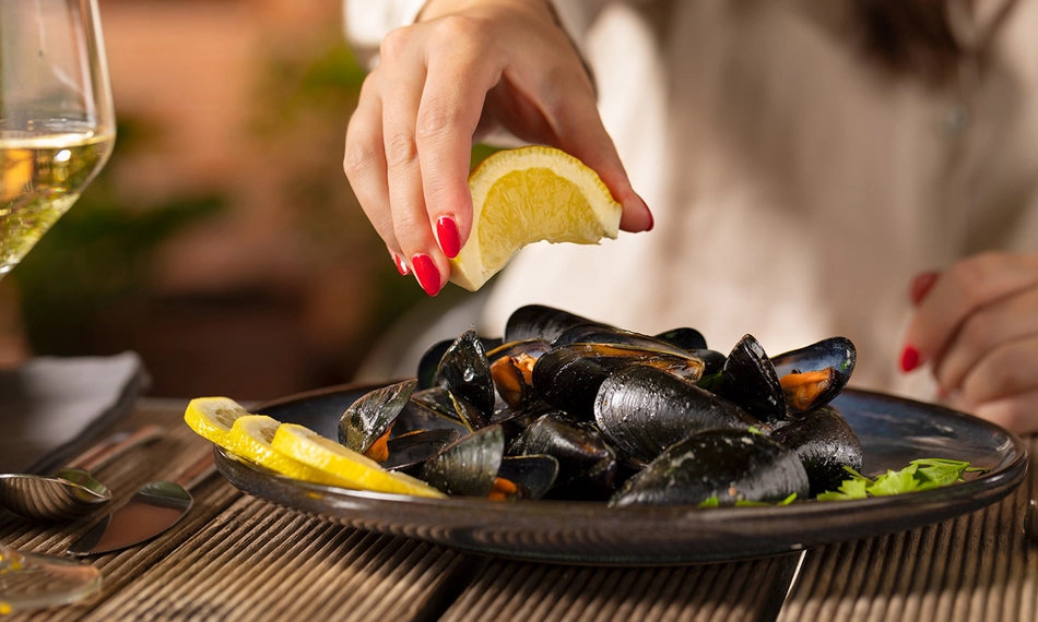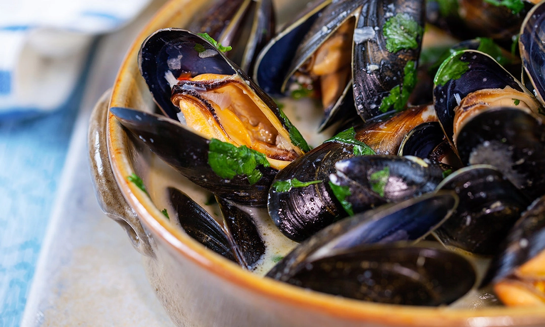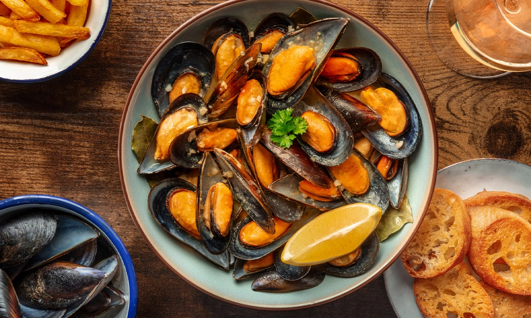 Savourez un délicieux menu moules Jumbo (1,2 kg) au choix accompagné de frites maison et d'une boule de glace artisanale au Restaurant Le cor de chasse de Saint-Hubert : un festin savoureux à ne pas manquer