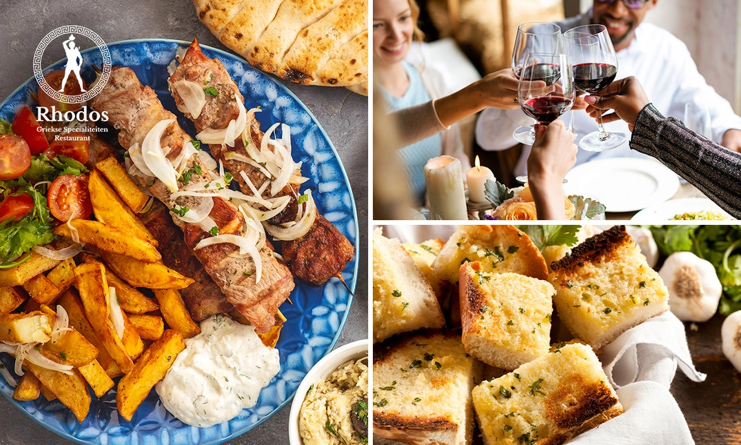 Grieks 3-gangen keuzediner bij Restaurant Rhodos in hartje Gouda: kies bij het hoofdgerecht voor mixed grill, kipsouvlaki of vegetarische schotel