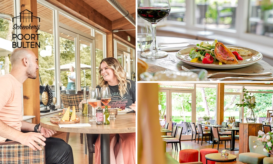 Voel je welkom bij Schenkerij PoortBulten. Bij deze sfeervolle schenkerij kun je terecht voor een heerlijk 3-gangendiner à la carte, inclusief amuse. De chef-kok werkt met verse streekproducten, zodat je geniet van echte kwaliteit. Je geniet niet alleen van de heerlijke gerechten, maar ook van het prachtige uitzicht. Deze mooie zaak staat namelijk midden in het Arboretum! Het is dus ook ideaal te combineren met een wandeling door het schitterende natuurpark. Enjoy!