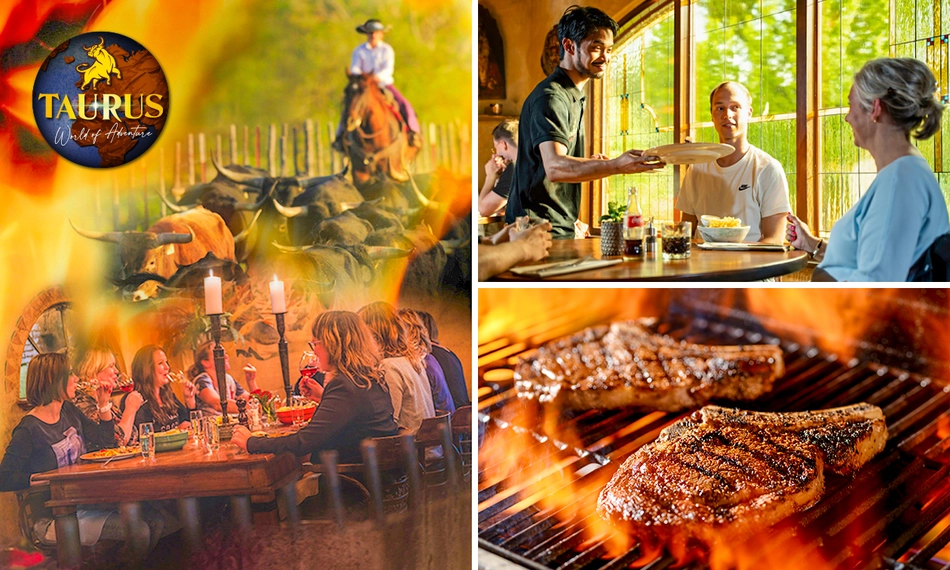 Bij Taurus World of Adventure kun je niet alleen de meest spectaculaire spellen spelen, maar ook heerlijk eten. Neem plaats in het prachtige Steakhouse Taurus en geniet van een uitgebreid 3-gangen keuzediner vol mediterrane en Argentijnse specialiteiten. Het rundvlees komt rechtstreeks uit Argentinië en wordt met passie voor je bereid. Liever vis of een vegetarisch gerecht? Ook dat is mogelijk! Ideaal om een dag vol spanning en sensatie af te sluiten. Wij wensen je alvast smakelijk eten!