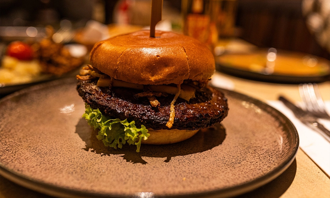 Auch in vegetarisch erhältlich mit zwei Spiegeleiern, Röstzwiebeln, Bratkartoffeln und einem Beilagensalat